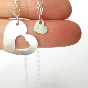 סט שתי שרשראות לב מקסימות מכסף | מתנה לאמא ולבת