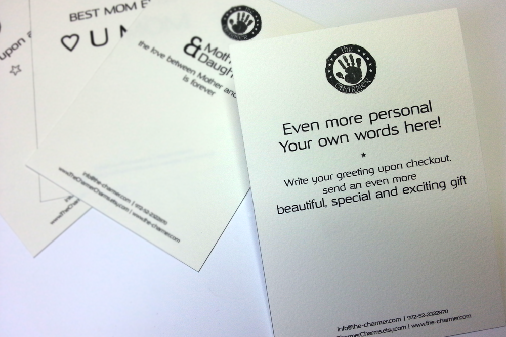 את כרטיס הברכה ניתן לרכוש בנוסף לתכשיטים שלנו,