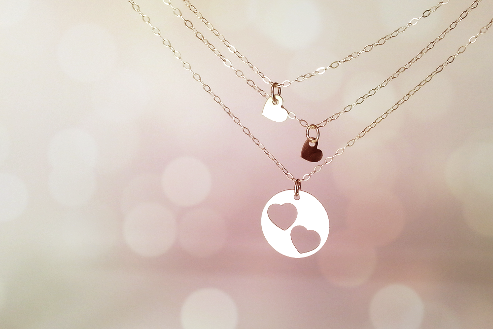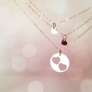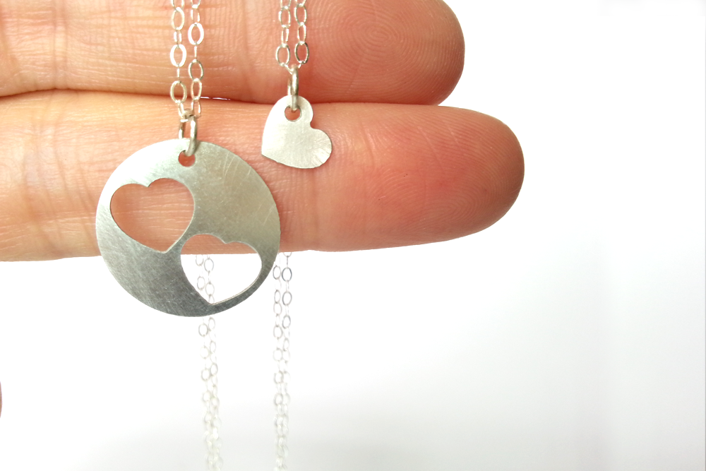 תליון בצורת עיגול אשר ממנו חתוכים שני לבבות קטנים.