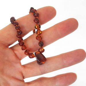 שרשרת ענברים לתינוקות עם תליון ענבר – דגם דובדבן – ענברים עגולים