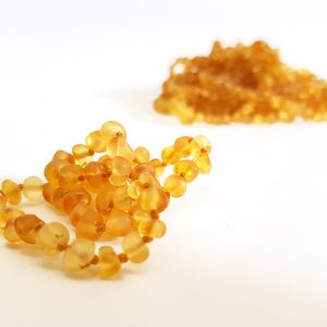 שרשרת ענבר לתינוקות – דגם דבש – RAW (מט) – ענברים עגולים