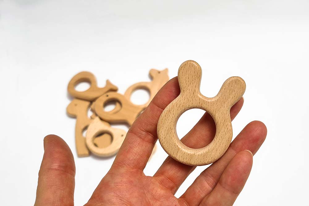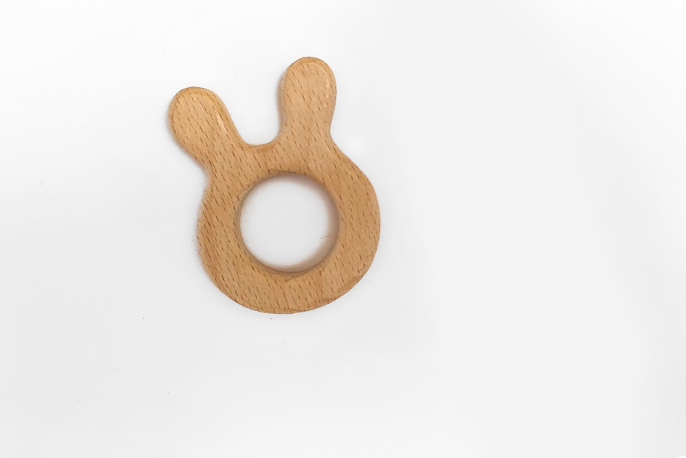 נשכן לתינוק ארנבת, עשויי בעבודת יד מעץ איכותי בגימור חלק ונעים למגע, למציצה וללעיסה.