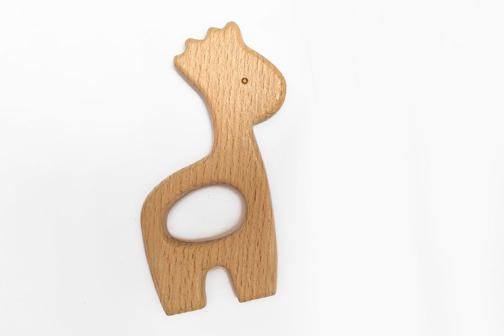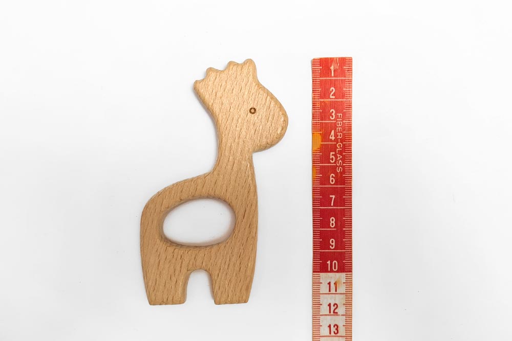 נשכן לתינוקות ג'ירפה, עשויי בעבודת יד מעץ איכותי בגימור חלק ונעים למגע, למציצה וללעיסה.
