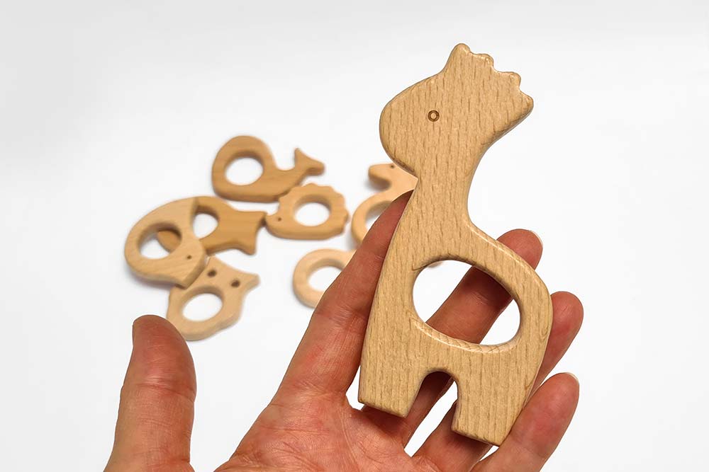 העץ ממנו עשוים הנשכנים לתינוק הינו טבעי רך, ללא לכה, צבע, ציפוי או כל גימור אחר שאינו טבעי על מנת לאפשר לתינוקות את הטוב ביותר עבורם וכן, אינו מכיל עומס פרטים על מנת שלא להציף את התינוק בגירויים, בעיקר בשלבים המוקדמים.