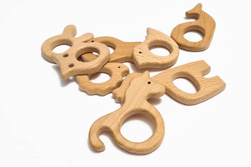 סט הנשכן לתינוק חיות מופלאות, עשויי בעבודת יד מעץ איכותי בגימור חלק ונעים למגע, למציצה וללעיסה.
