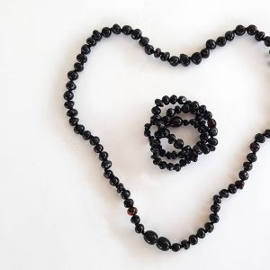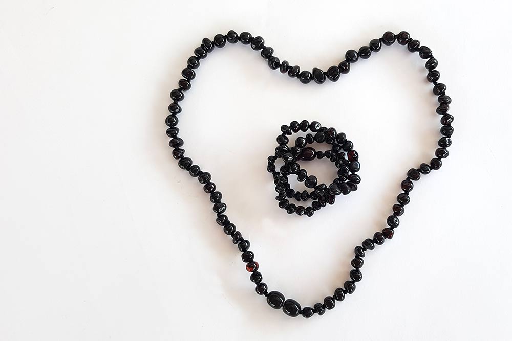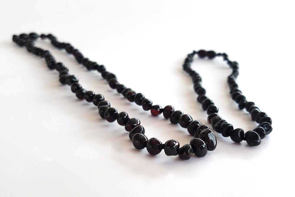 סט שרשרת ענברים לתינוק ולאמא דגם דובדבן, ענברים עגולים