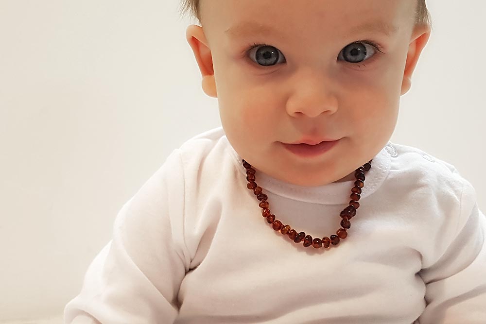 ענידת שרשרת ענברים לתינוק – תחת השגחת מבוגר בלבד.