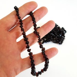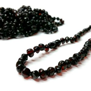 שרשרת משגעת שזורה מענברים עגולים, בגוון דובדבן עמוק עם הרבה נוכחות. נראית נפלא גם על ילדים גדולים.