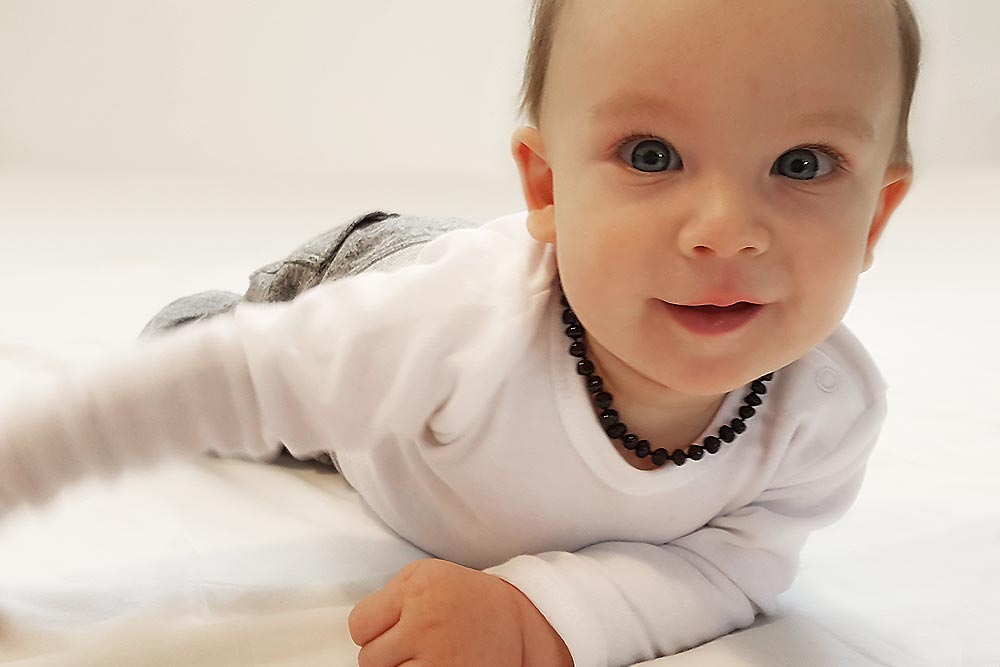 ענידת שרשרת ענברים לתינוק – תחת השגחת מבוגר בלבד.