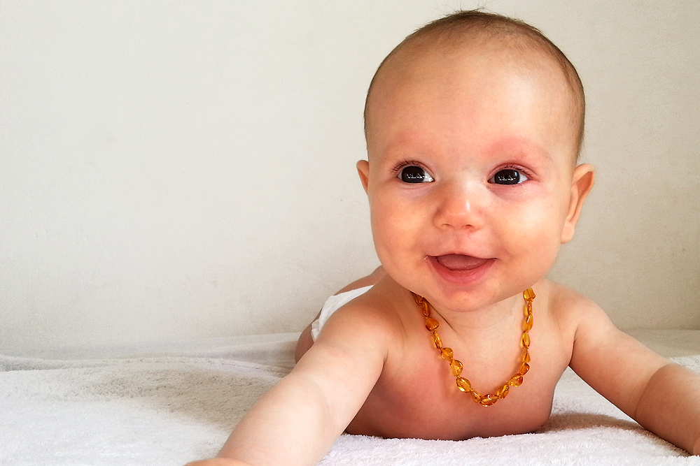 ענידת שרשרת ענברים לתינוק – תחת השגחת מבוגר בלבד.